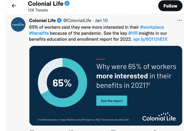 Twitter • 10th January 2022 Twitter: Why were 65% of workers more interested in their benefits? Why were 65% of workers more interested in their benefits in 2021?