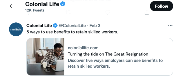 Twitter • 3rd February 2022 Twitter: Turning tide resignation on The Great Resignation Discover five ways employers can use benefits to retain skilled workers.