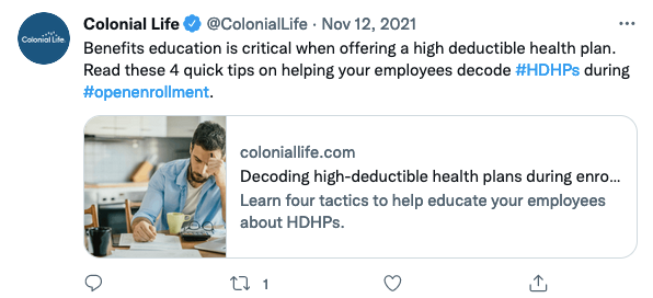 Twitter • 12th November 2021 Twitter: Decoding high-deductible health plans during enrollment Learn four tactics to help educate your employees about HDHPs.